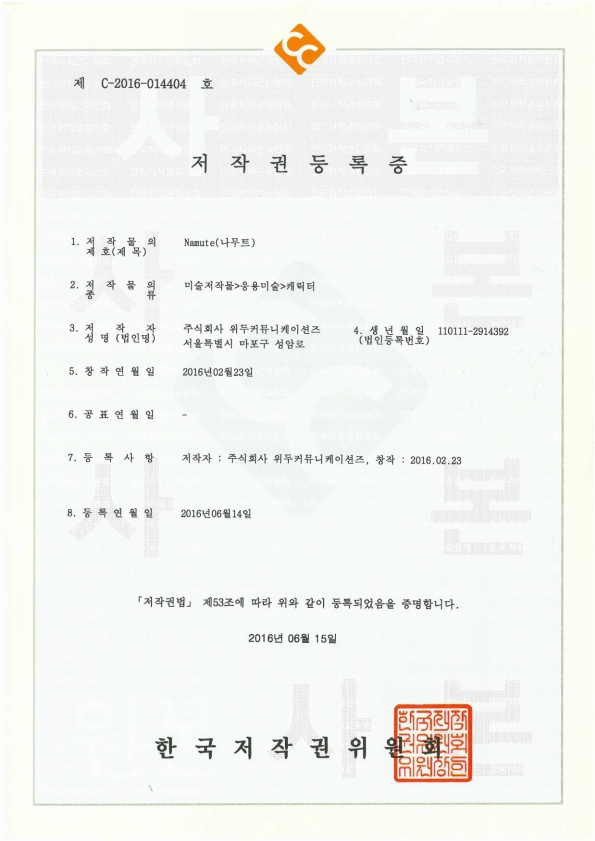 [한국/저작권] 나무트 페이지 정보 작성자 WeDu 댓글 0건 조회 6,429회 작성일 19-05-30 19:08 본문 2016-06-14 저작권 C-2016-014404 나무트 / 미술저작물>응용미술>캐릭터 List Previous[한국/저작권] 리안 19.05.30 Next[한국/저작권] 길리 19.05.30