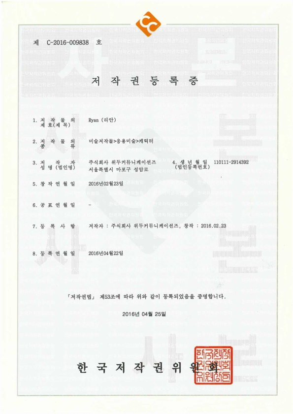 [한국/저작권] 리안 페이지 정보 작성자 WeDu 댓글 0건 조회 6,149회 작성일 19-05-30 19:08 본문 2016-04-22 저작권 C-2016-009838 리안 / 미술저작물>응용미술>캐릭터 List Previous[한국/저작권] 아리스 19.05.30 Next[한국/저작권] 나무트 19.05.30